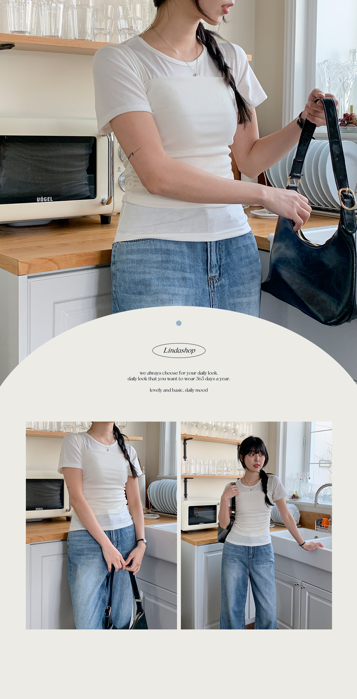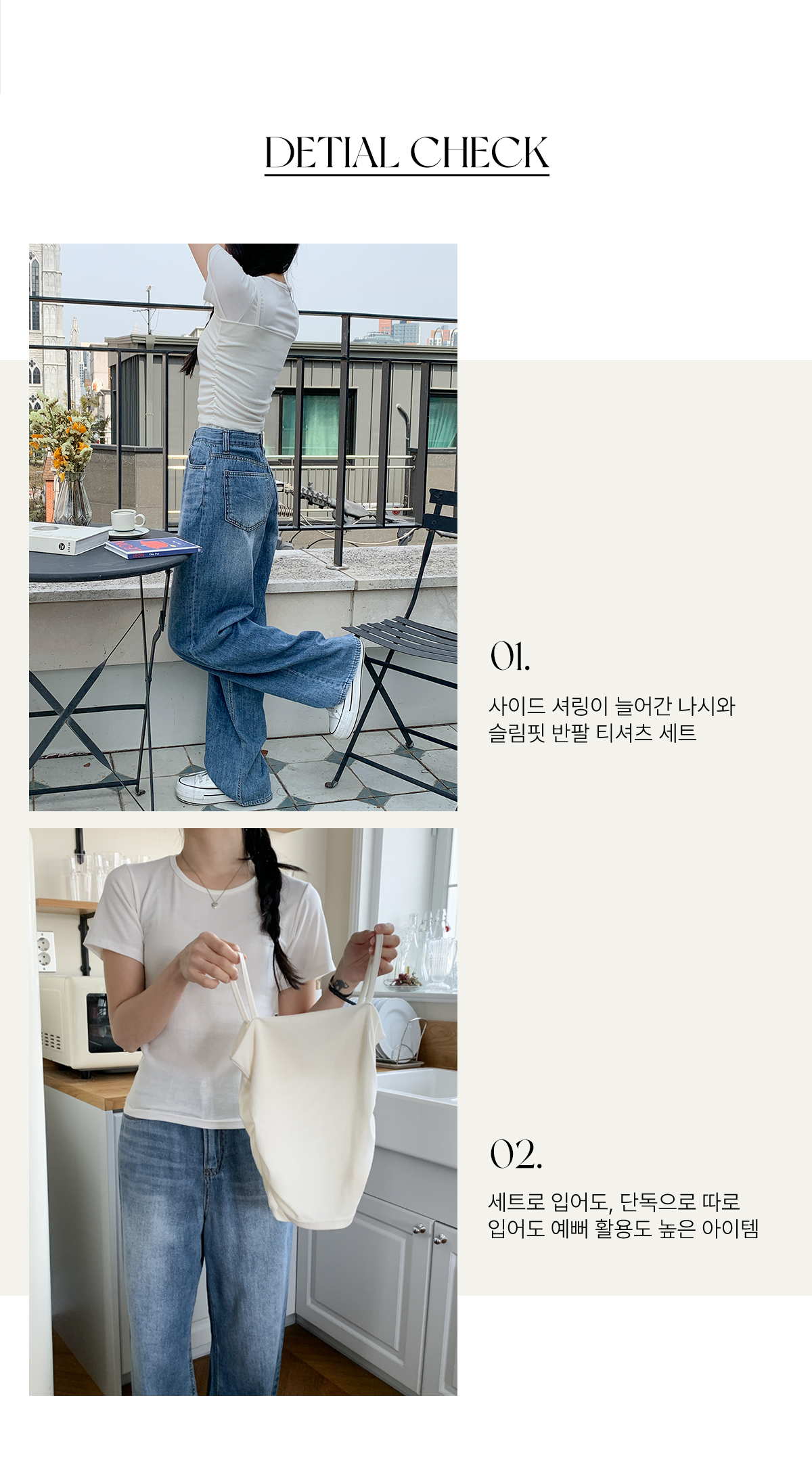 나시와 반팔티를 레이어링 해서 세트로 입어도, 단독으로 따로 입어도 예뻐 활용도가 좋아 추천해요~!