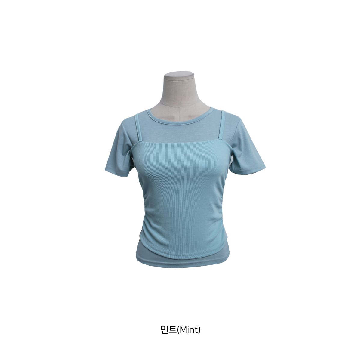 사이드 셔링이 늘어간 나시와 슬림핏 반팔 티셔츠 세트에요!