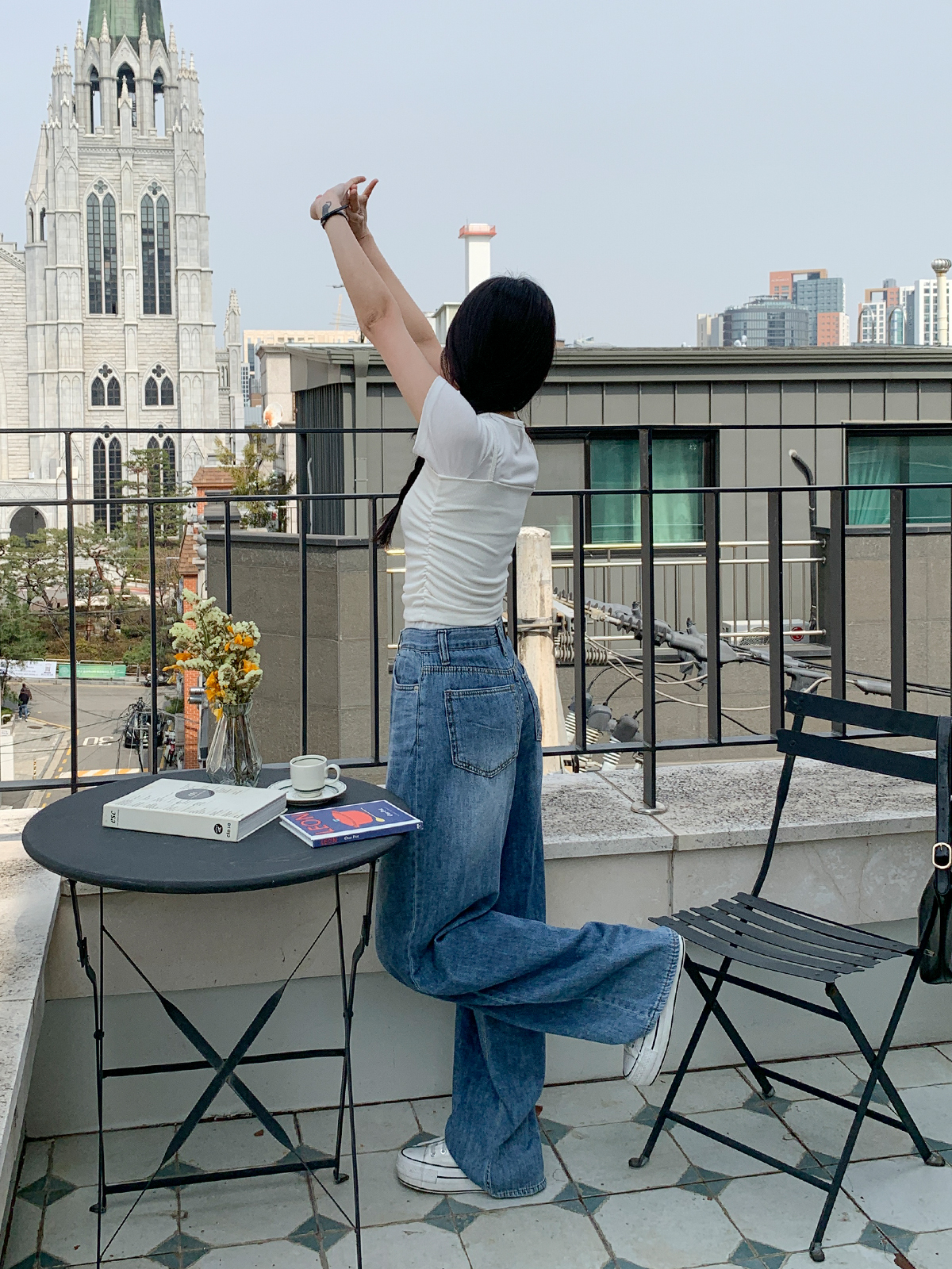#티셔츠#라운드티셔츠#여성티셔츠#데일리룩#데일리코디#데일리#캐쥬얼#나시세트#골지나시#슬림핏반팔#여름나시반팔세트#데일리세트#사이드셔링골지나시